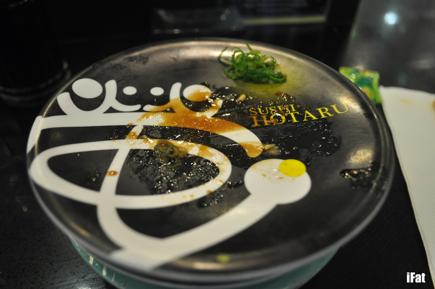 Sushi Hotaru is located within the Galeries right underneath one of my favourite ramen places in the city. It’s a pretty sweet location and all sushi on display (except ones placed on gold plates) are $3. They also offer touch screens that let you order what you want if you don’t like sitting there and watching dishes pass you by. I love the experience of being able to pick a plate off of the train but I couldn’t resist playing with the touch screen.