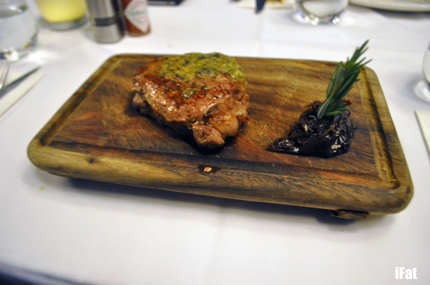 Fortunately for me, this was premium steak. Cooked medium rare and to perfection, the butter that glazed the top of the steak was absolutely delicious. I tend to like my steak to contain a bit more fat than the sirloin but the meat was so tender that I quickly forgot about my love for cows that enjoyed a bit more grass than the rest of their herds. The garlic jam was another major plus and didn’t stink of shellfish like my neighbour’s dish.