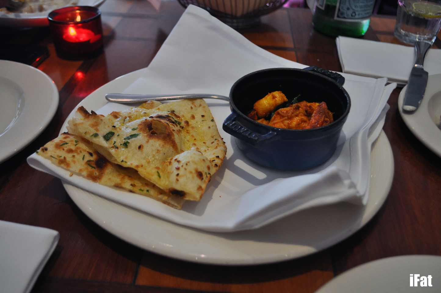Confession: It was my first time ever sampling pappadums. They were very light and crispy, great way to whet the appetite. They became even better when we were given an unintentional dipping sauce.